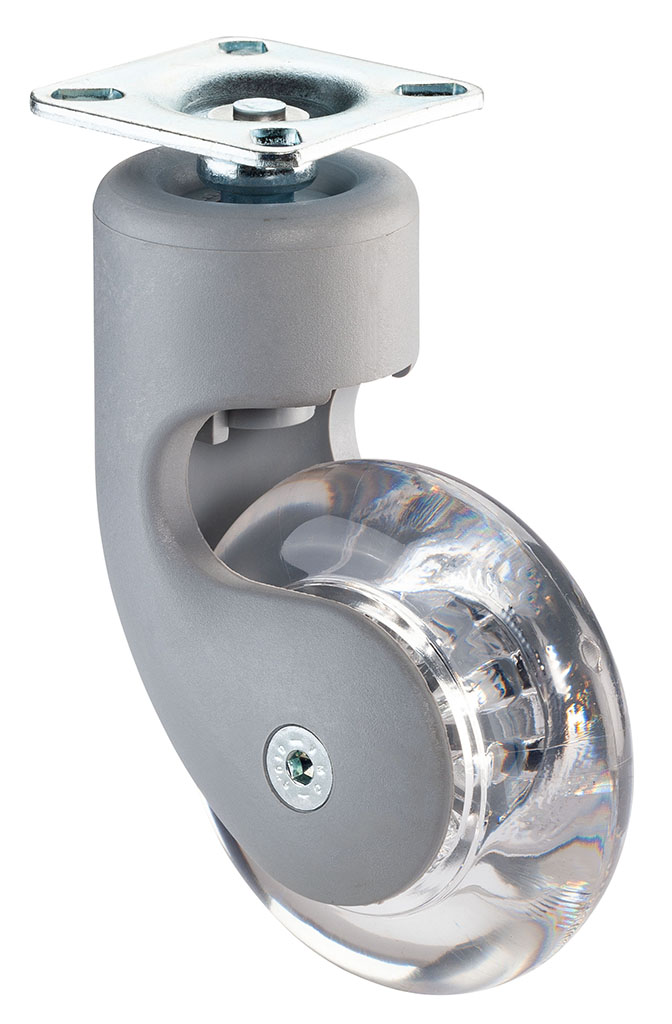 Designové kolečko v plastové vidlici s tvrdým transparentním kolem