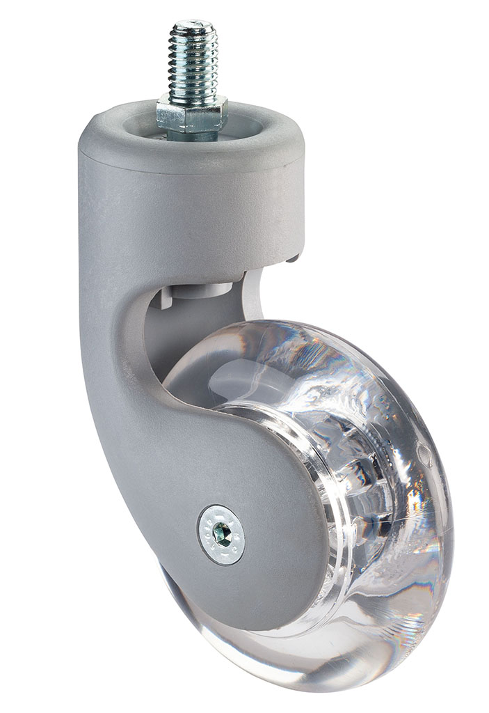 Designové kolečko v plastové vidlici s tvrdým transparentním kolem