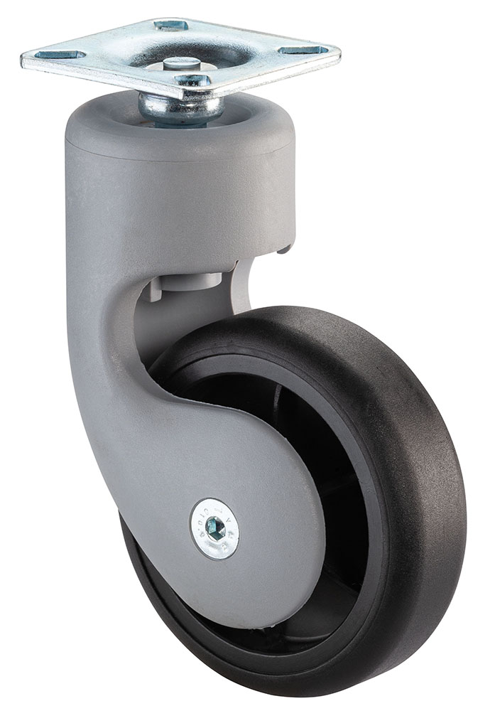 Nábytkové designové pryžové kolečko otočné s plotničkou, průměr 75 mm, nosnost 50 kg - F314.075