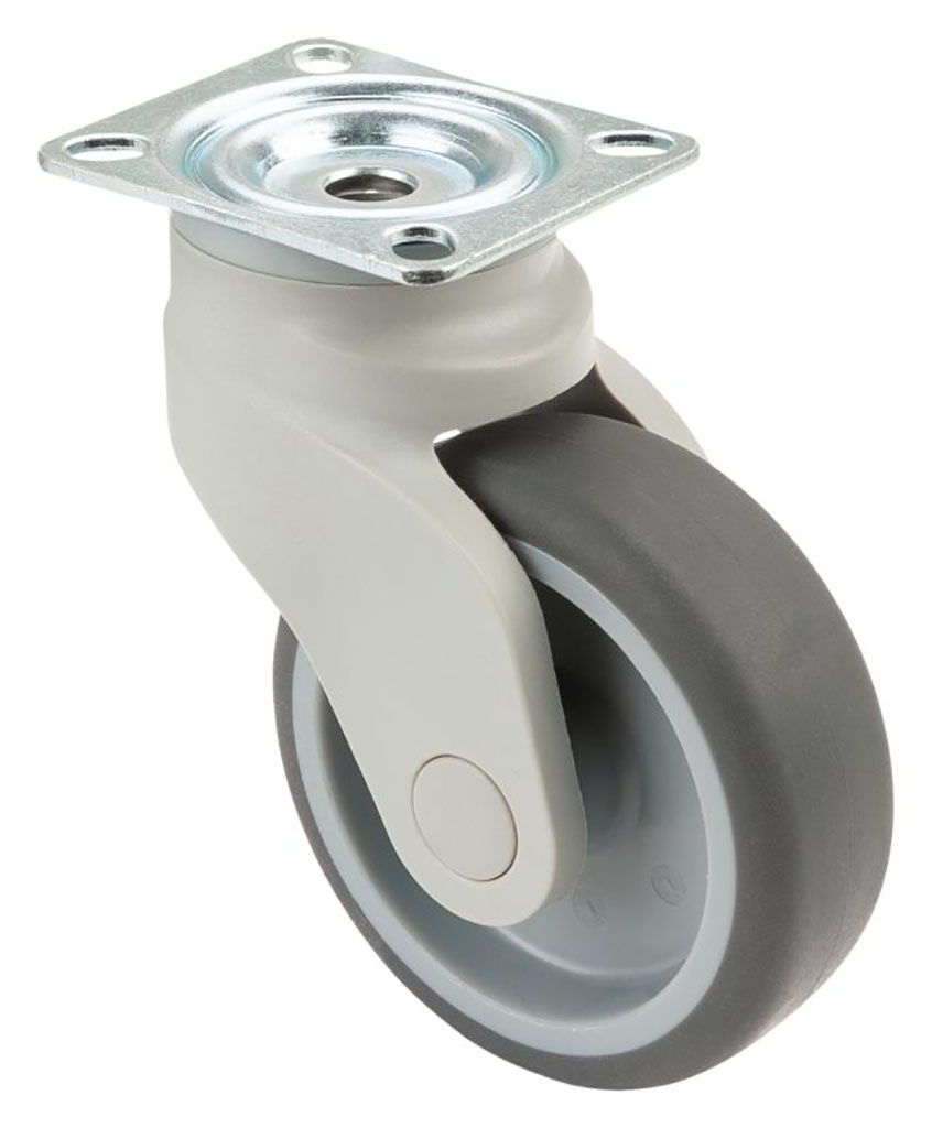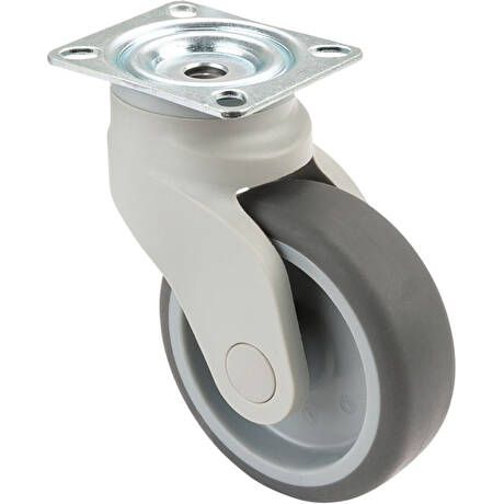 vidlice: plastová s dvojitým kuličkovým věncem, kolo: plastové s šedou nešpinící gumou na kluzném ložisku