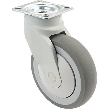 vidlice: plastová s dvojitým kuličkovým věncem, kolo: plastové s šedou nešpinící gumou na kuličkovém ložisku