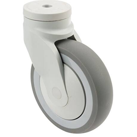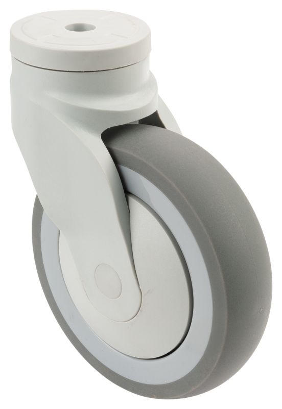 vidlice: plastová s dvojitým kuličkovým věncem, kolo: plastové s šedou nešpinící gumou na kuličkovém ložisku