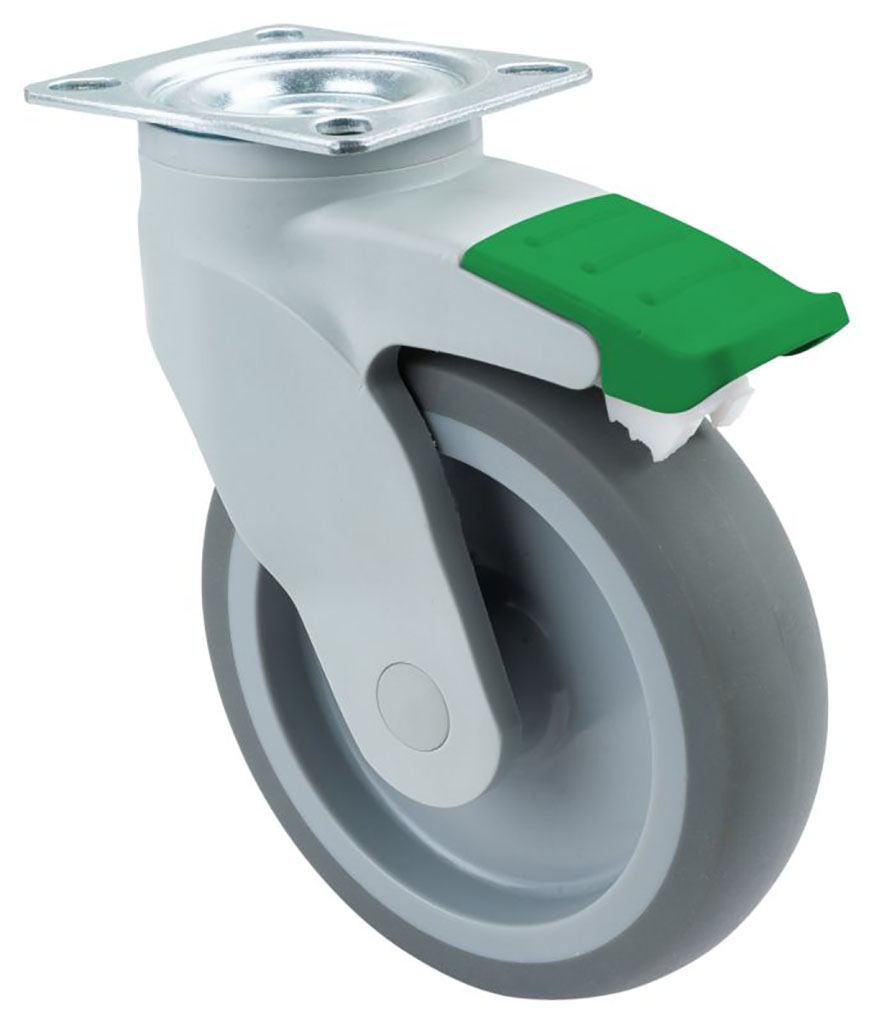 DŮM KOLEČEK » Přístrojová kolečka » Přístrojová kolečka A81-plastová vidlice » Přístrojová kolečka A81-plastová vidlice-otočná s brzdou na čtyři šrouby ( dvojí funkce brzdění )