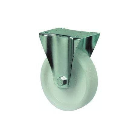 vidlice: ocelový pozinkovaný plech s dvojitým kuličkovým věncem, kolo: bílý polyamid na jehlovém ložisku