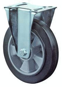 vidlice: ocelový pozinkovaný plech s dvojitým kuličkovým věncem, kolo: hliníkové s černou gumou na kuličkovém ložisku