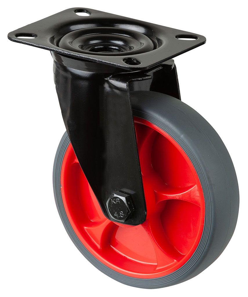 Transportní kolo v otočné vidlici s uchycením na plotnu na čtyři šrouby