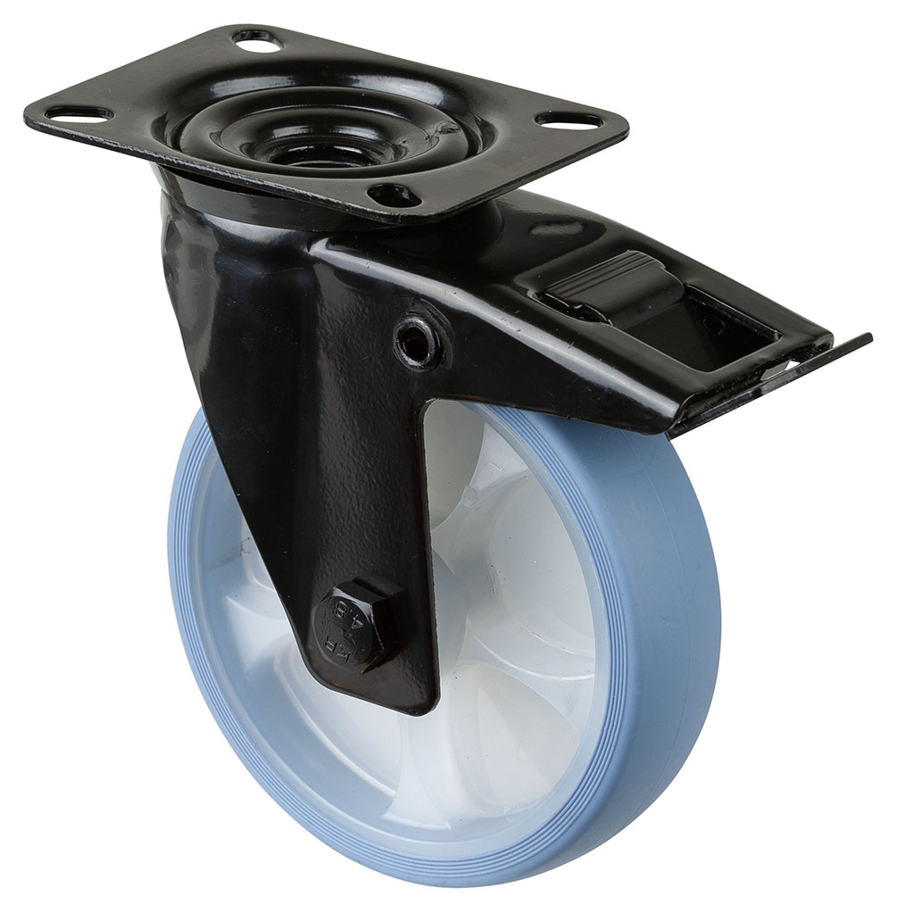 Transportní kolo v otočné vidlici s brzdou s uchycením na plotnu na čtyři šrouby