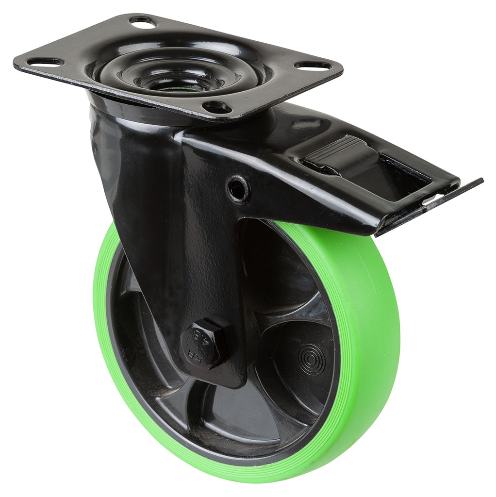 Transportní kolo v otočné vidlici s brzdou s uchycením na plotnu na čtyři šrouby