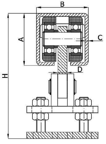 DŮM KOLEČEK » Vodící kladky a profily pro brány » Vodící kladky pro brány » Uložení výkyvné s výškovým nastavením