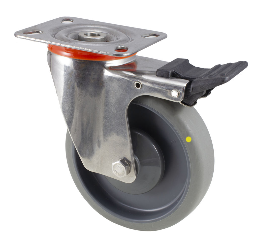 DŮM KOLEČEK » Antistatická kola » Série UFP-A INOX » Otočné provedení + brzda s uchycením na čtyři šrouby - kuličkové ložisko