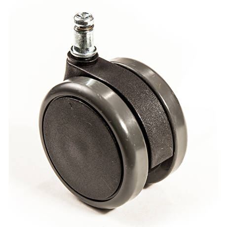 Dvojité plastové kolečko s běhounem z šedé nešpinící pryže s automatickou brzdou pro kancelářskou židli s uchycením na čep