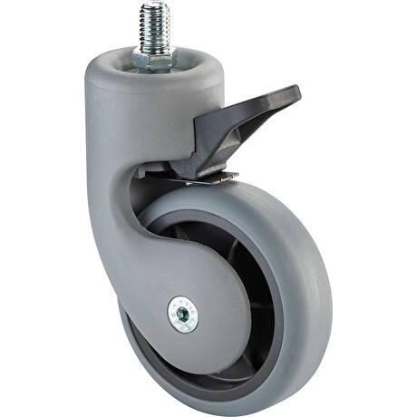 Designové kolečko v plastové vidlici s měkkým pryžovým kolem a s brzdou