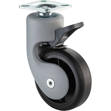 Designové kolečko v plastové vidlici s měkkým pryžovým kolem a s brzdou