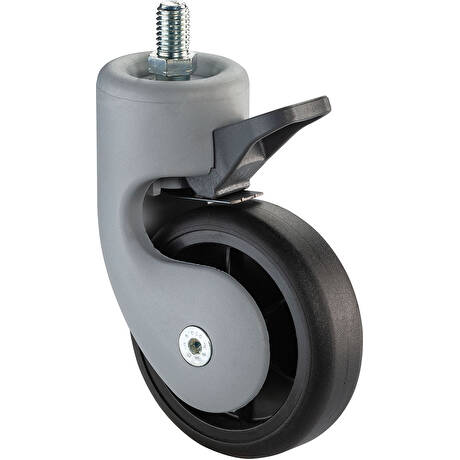 Designové kolečko v plastové vidlici s měkkým pryžovým kolem a s brzdou