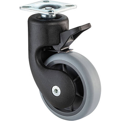 Designové kolečko v plastové vidlici s měkkým pryžovým kolem a s brzdou