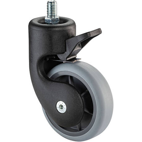 Designové kolečko v plastové vidlici s měkkým pryžovým kolem a s brzdou
