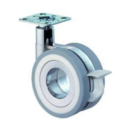 vidlice: zinková litina chromována do lesku, dvojkolo: šedý polyuretanový běhoun