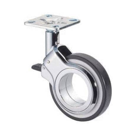 vidlice: zinková litina chromována do lesku, kolo: černý polyuretanový běhoun