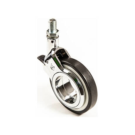 vidlice: zinková litina chromována do lesku, kolo: černý polyuretanový běhoun