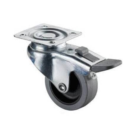 vidlice: ocelový pozinkovaný plech s dvojitým kuličkovým věncem, kolo: disk polypropylen černý, běhoun šedá pryž na kluzném ložisku