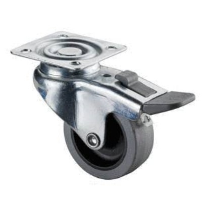 vidlice: ocelový pozinkovaný plech s dvojitým kuličkovým věncem, kolo: disk polypropylen černý, běhoun šedá pryž na kluzném ložisku