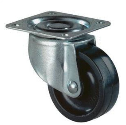 vidlice: ocelový pozinkovaný plech s dvojitým kuličkovým věncem, kolo: polypropylen černý na kluzném ložisku