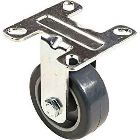 Plastové nábytkové kolečko s šedým polyuretanovým nešpinícím běhounem v pevné vidlici s uchycením na čtyři šrouby