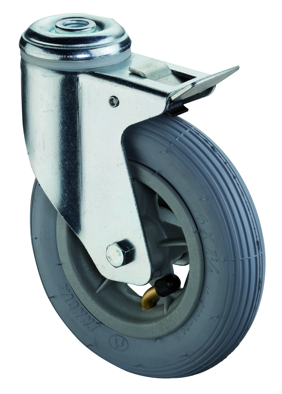 DŮM KOLEČEK » Nafukovací - bantamová kola a kola NEnafukovací (plná) » Nafukovací kola ve vidlici » Otočné provedení s brzdou s uchycením na jeden šroub