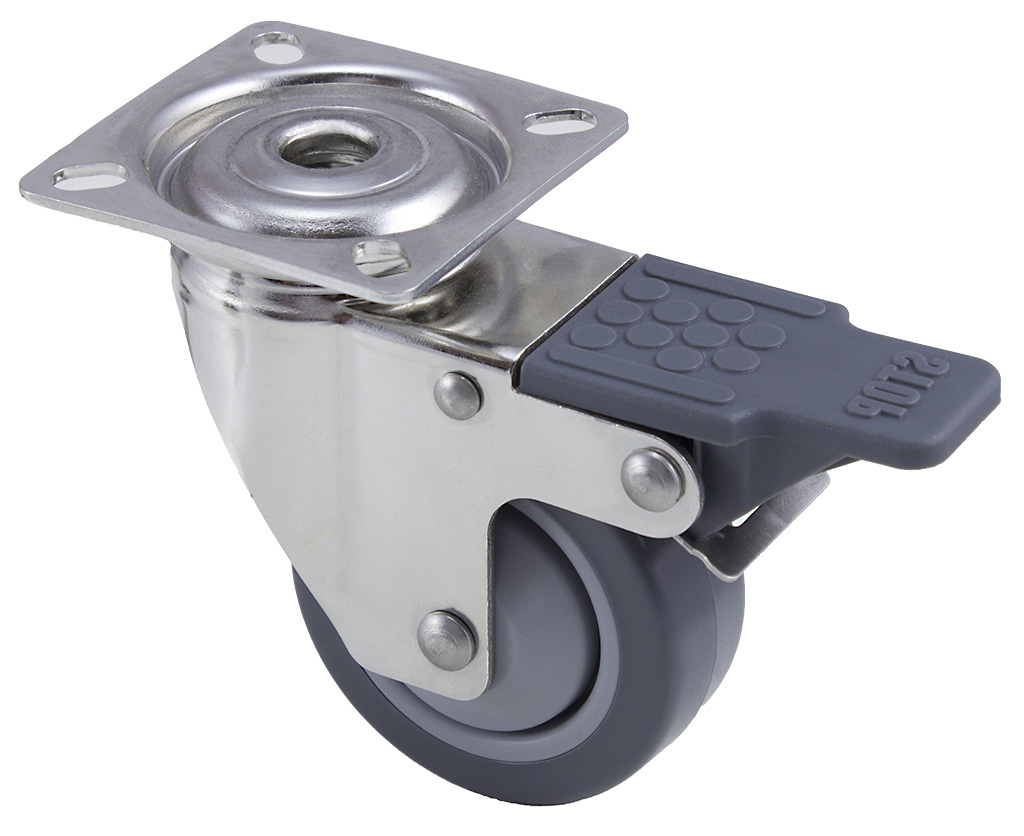 DŮM KOLEČEK » Nerezová kola » Nerezová série 253 » Otočné provedení + brzda s uchycením na čtyři šrouby - kluzné ložisko