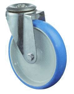 - kolo: bílý polyamid s modrým polyuretanovým běhounem Shore A 85 na kluzném ložisku