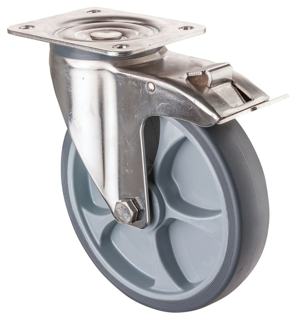 DŮM KOLEČEK » Nerezová kola » Nerezová transportní B43 » Nerezová transportní B43-otočná s brzdou na čtyři šrouby