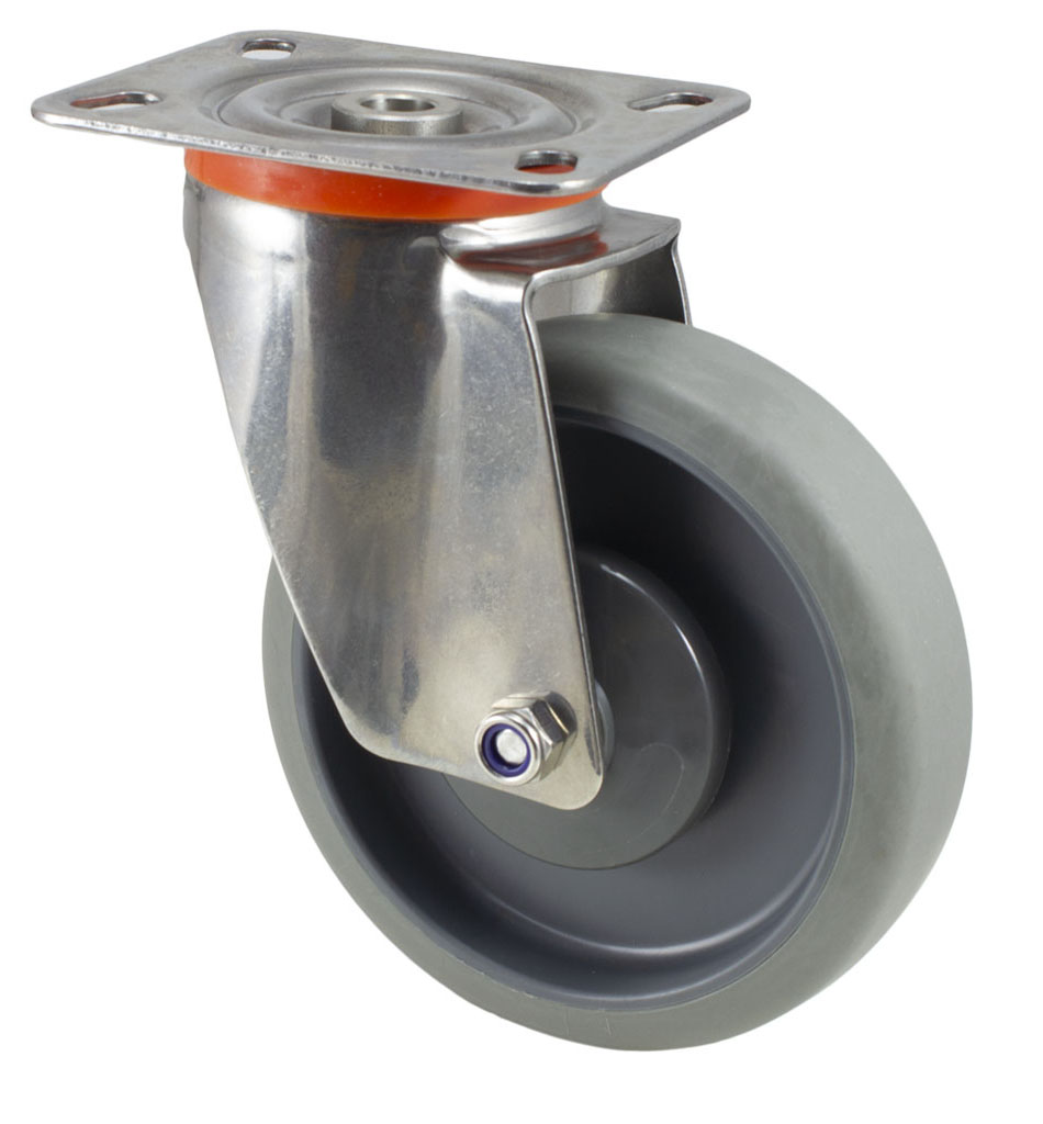 DŮM KOLEČEK » Nerezová kola » Nerezová transportní UFP-G INOX » Otočné provedení s uchycením na čtyři šrouby - kuličkové ložisko