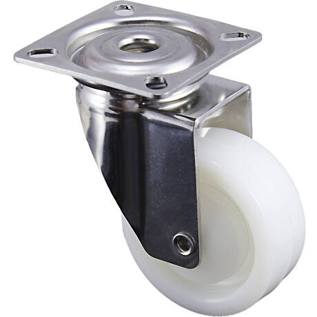 Polyamidové kolečko v otočné nerezové vidlici s uchycením na plotnu na čtyři šrouby