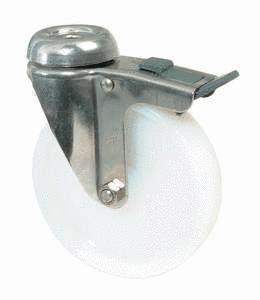 vidlice: nerezový plech s dvojitým kuličkovým věncem, kolo: bílý polyamid na kluzném ložisku