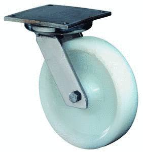 vidlice: masivní nerezový svařenec s dvojitým kuličkovým věncem, kolo: bílý polyamid na kluzném ložisku