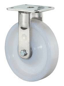 vidlice: masivní nerezový svařenec s dvojitým kuličkovým věncem, kolo: bílý polyamid na kuličkovém ložisku