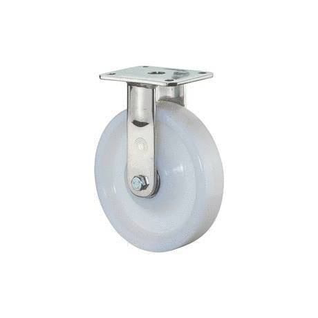 vidlice: masivní nerezový svařenec s dvojitým kuličkovým věncem, kolo: litý bílý polyamid na kuličkovém ložisku