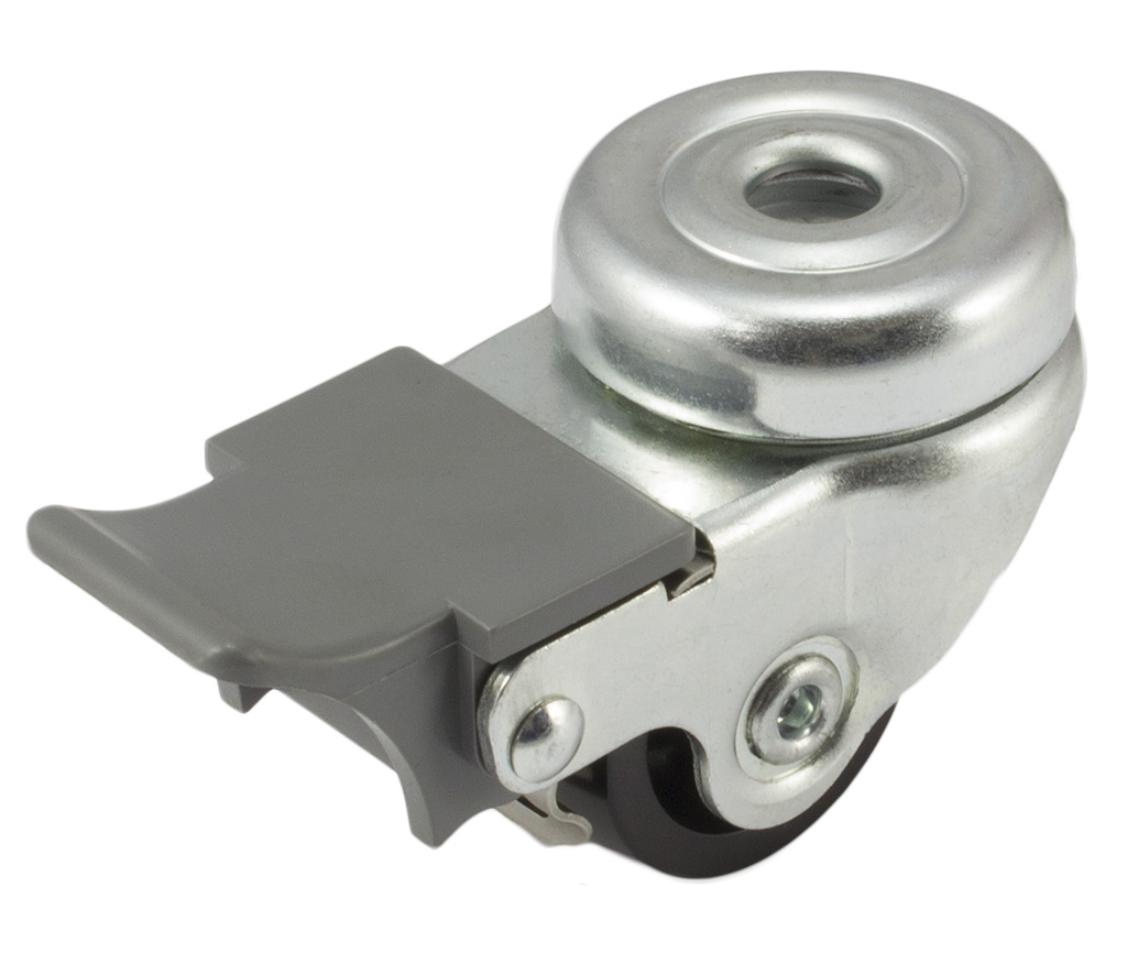 DŮM KOLEČEK » Nízkoprofilové a stavitelné kladky » Nízkoprofilová pojezdová kola série MN » Otočné provedení + brzda s uchycením na jeden šroub - kluzné ložisko