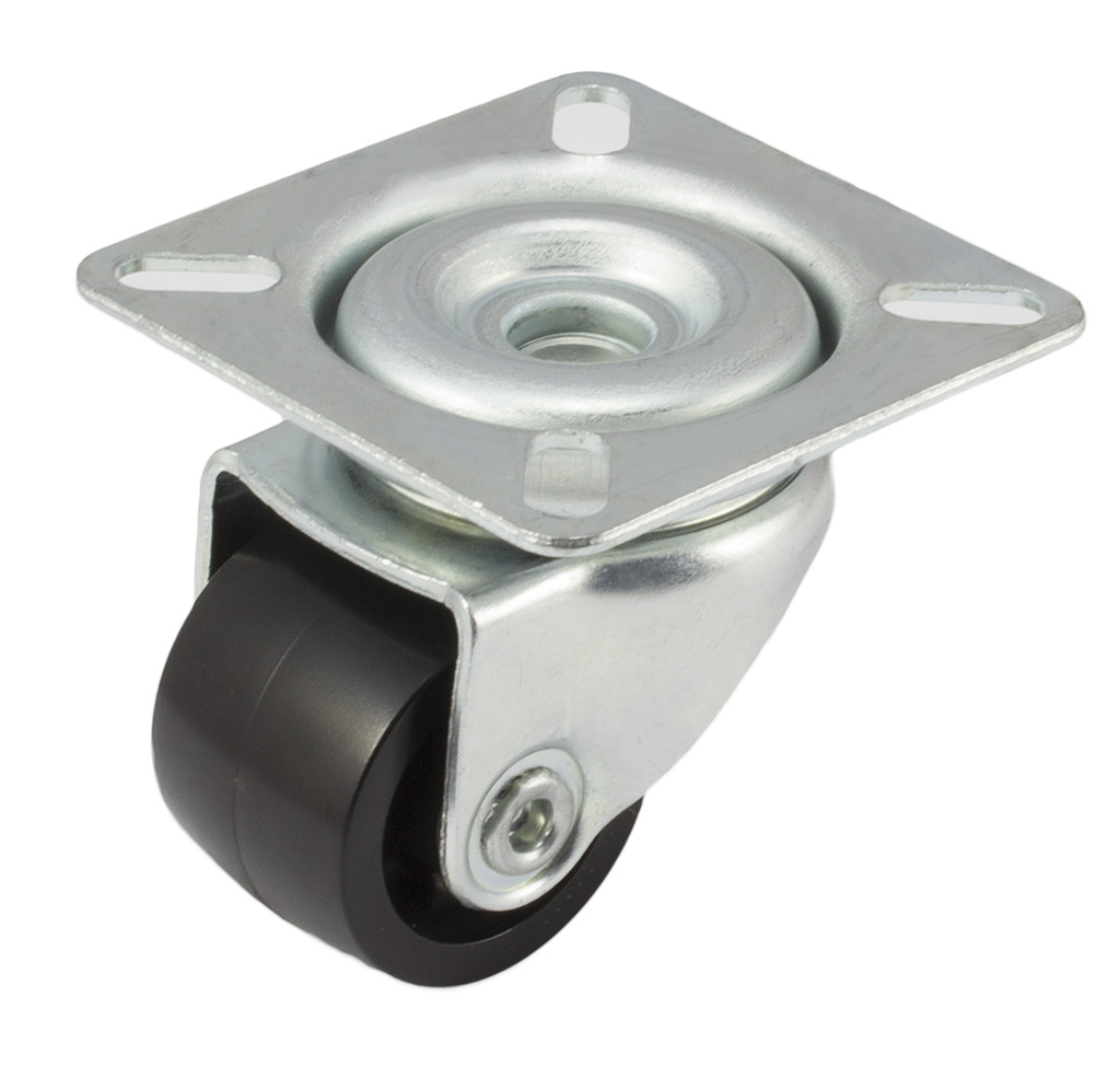 DŮM KOLEČEK » Nízkoprofilové a stavitelné kladky » Nízkoprofilová pojezdová kola série MN » Otočné provedení s uchycením na čtyři šrouby - kluzné ložisko