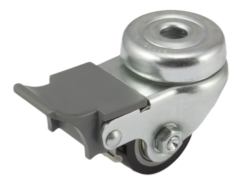 DŮM KOLEČEK » Nízkoprofilové a stavitelné kladky » Nízkoprofilová pojezdová kola série PUC » Otočné provedení + brzda s uchycením na jeden šroub - kuličkové ložisko