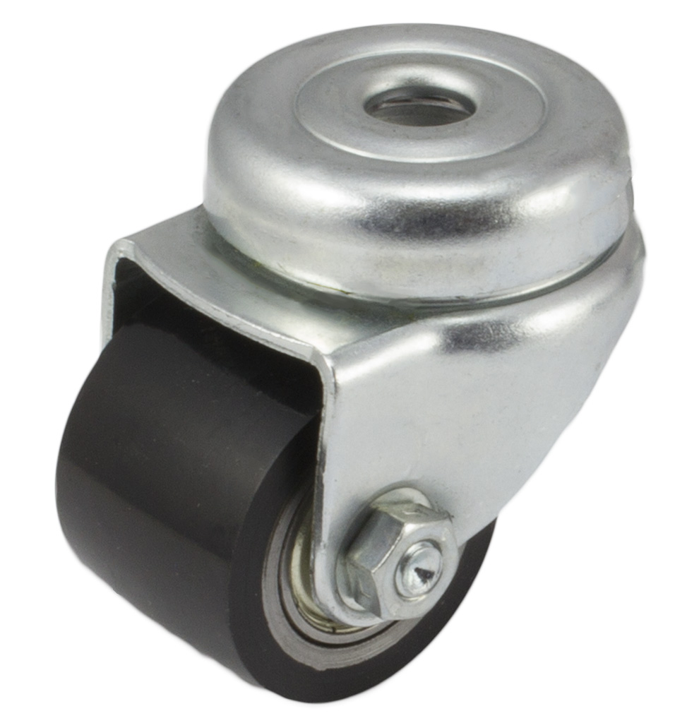 DŮM KOLEČEK » Nízkoprofilové a stavitelné kladky » Nízkoprofilová pojezdová kola série PUC » Otočné provedení s uchycením na jeden šroub - kuličkové ložisko