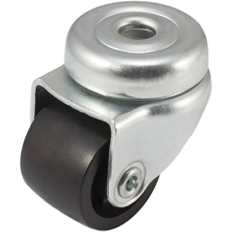 Nízkoprofilové plastové kolečko s kluzným ložiskem v otočné vidlici s uchycením na jeden šroub
