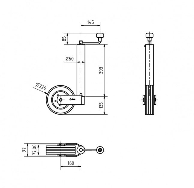 Opěrné kolečko pro přívěsný vozík KDP-220