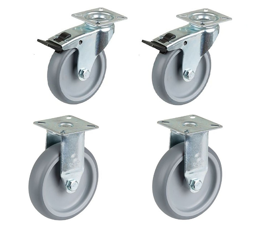 DŮM KOLEČEK » Přístrojová kolečka » Přístrojová kolečka A80 » Sada přístrojový kol A80.100 - otočné provedení s brzdou a pevné za ZVÝHODNĚNOU CENU