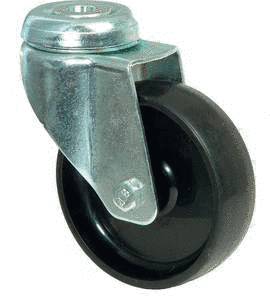 vidlice: ocelový pozinkovaný plech s dvojitým kuličkovým věncem, kolo: polypropylen černý na kluzném ložisku