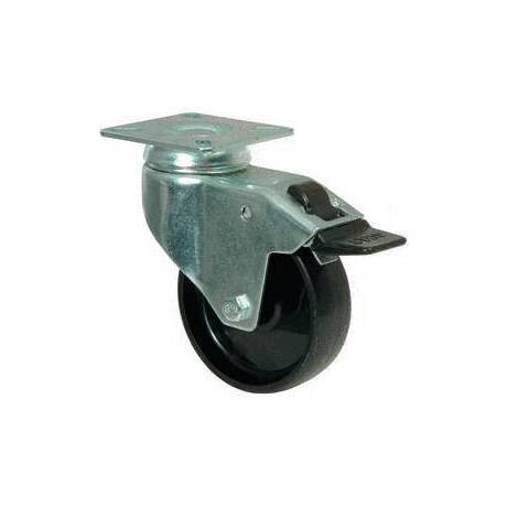 vidlice: ocelový pozinkovaný plech s dvojitým kuličkovým věncem, kolo: polypropylen černý na kluzném ložisku