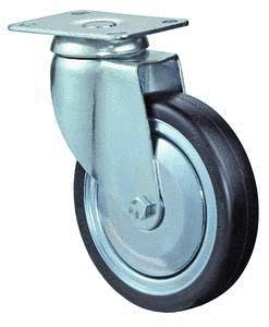 vidlice: ocelový pozinkovaný plech s dvojitým kuličkovým věncem, kolo: plechové s černou nešpinící ANTISTATICKOU gumou na kuličkovém ložisku