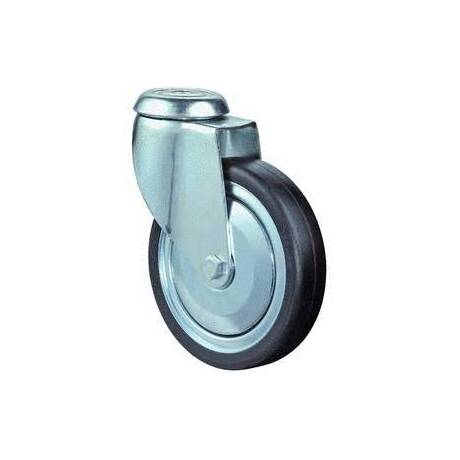 vidlice: ocelový pozinkovaný plech s dvojitým kuličkovým věncem, kolo: plechové s černou nešpinící ANTISTATICKOU gumou na kuličkovém ložisku