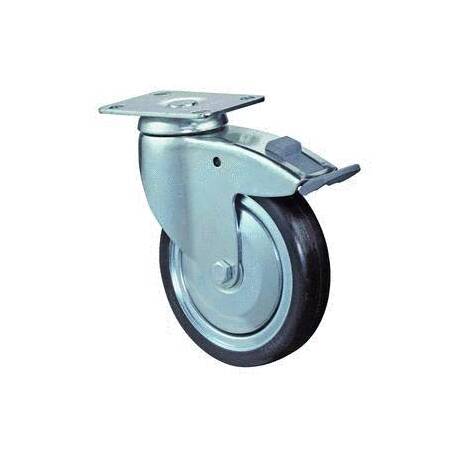 vidlice: ocelový pozinkovaný plech s dvojitým kuličkovým věncem, kolo: plechové s černou nešpinící ANTISTATICKOU gumou na kuličkovém ložisku