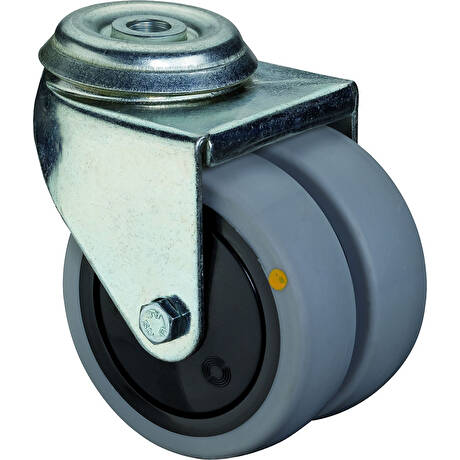 Přístrojové dvojité kolečko s šedým pryžovým ANTISTATICKÝM běhounem v otočné vidlici s uchycením na jeden šroub
